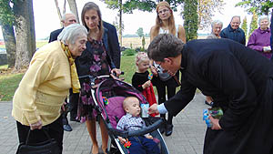 Žmonės džiaugėsi švente, retai šįmet pasitaikančia saulėta diena, nuotaika, kurią kūrė kunigas, pamokslą paįvairindamas linksmomis istorijomis. Tinkamas jauno kunigo sąmojis dažnai suteikia lengvumo ir gyvumo jo pamokslams, o žmonėms padeda pažvelgti į savo gyvenimą kitų akimis.